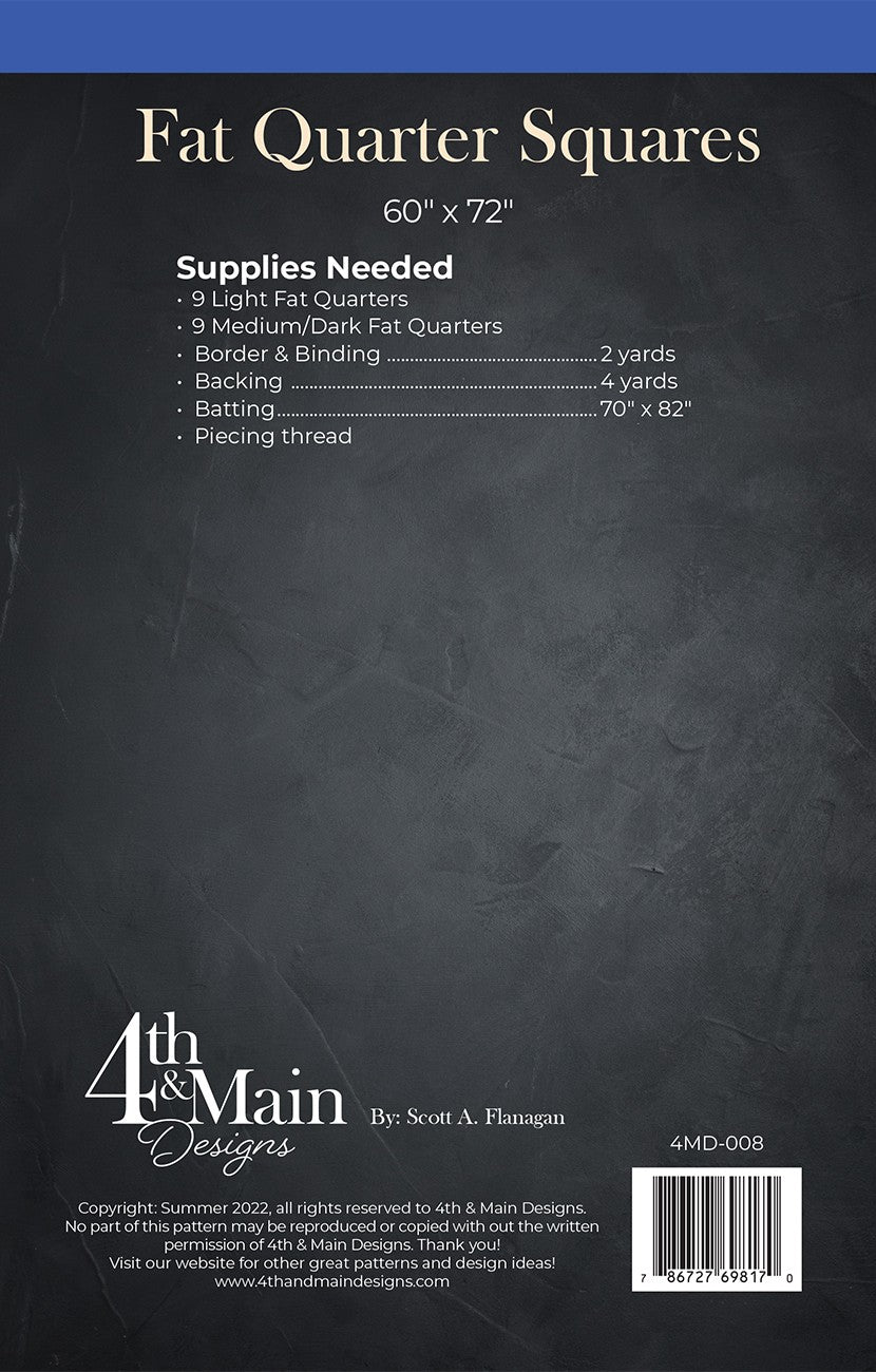 Create this simple quilt using nine sets of coordinating fat quarters. You will want a light and a dark fat quarter of each combo.