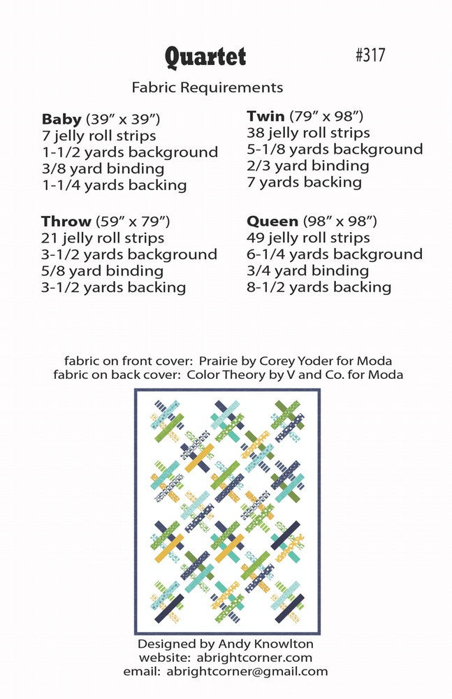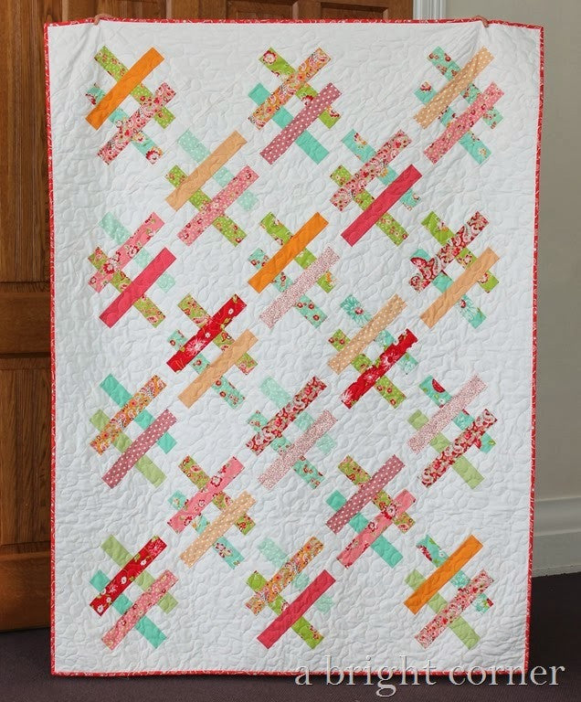 Jelly roll friendly pattern has four size options: baby, throw, twin, queen.
