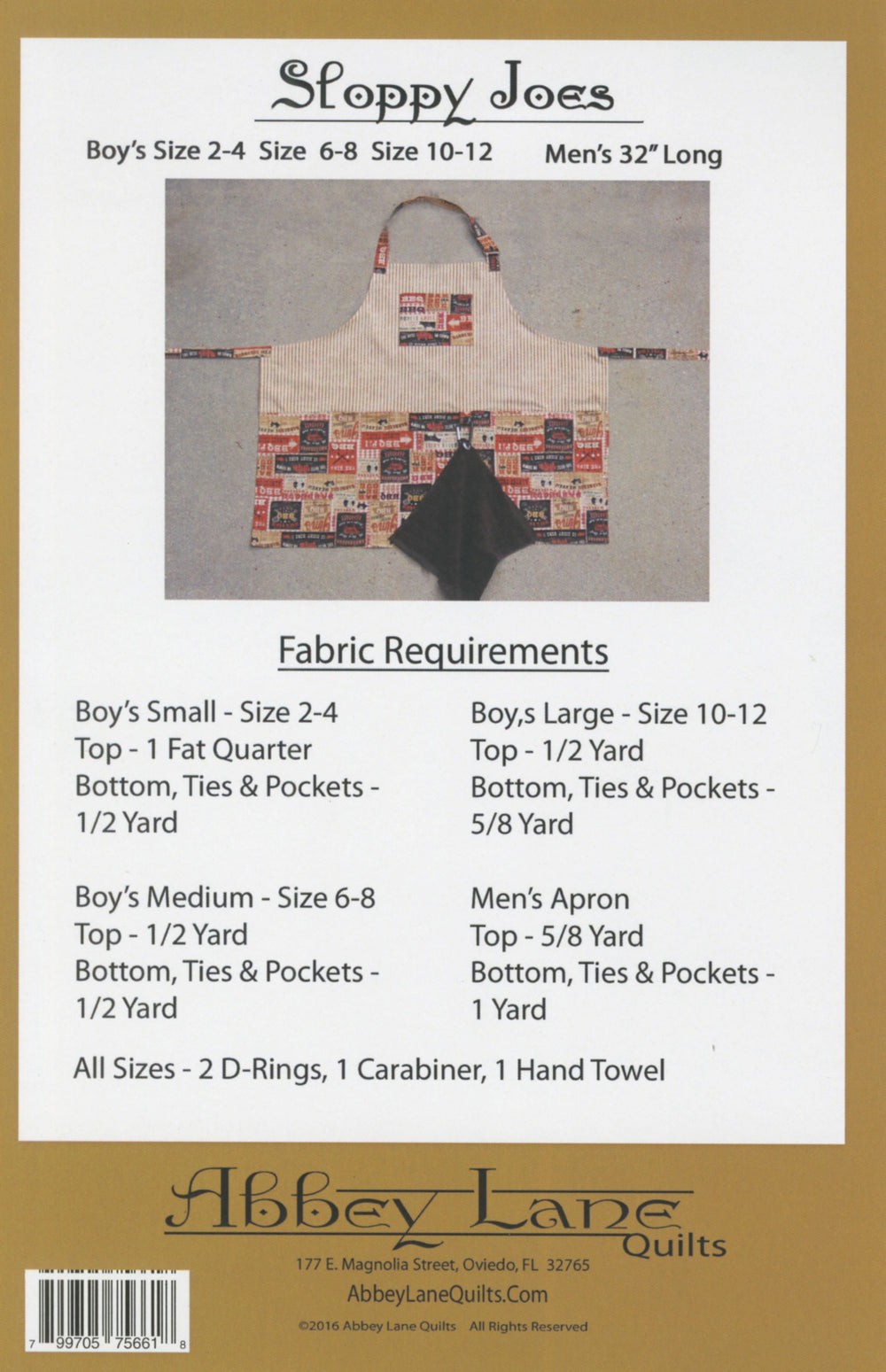 Sloppy Joes Apron Pattern is backordered and will ship as soon as it is back in stock.