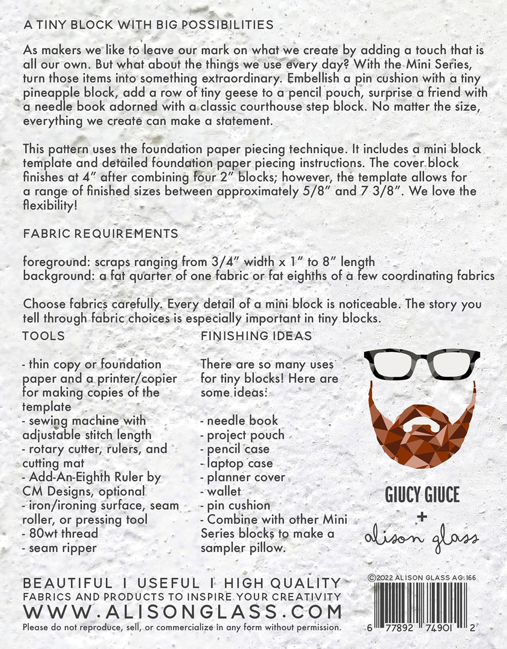 Embellish a pin cushion with a tiny pineapple block, add a row of tiny geese to a pencil pouch, surprise a friend with a needle book adorned with a classic courthouse step block. No matter the size, everything we create can make a statement.