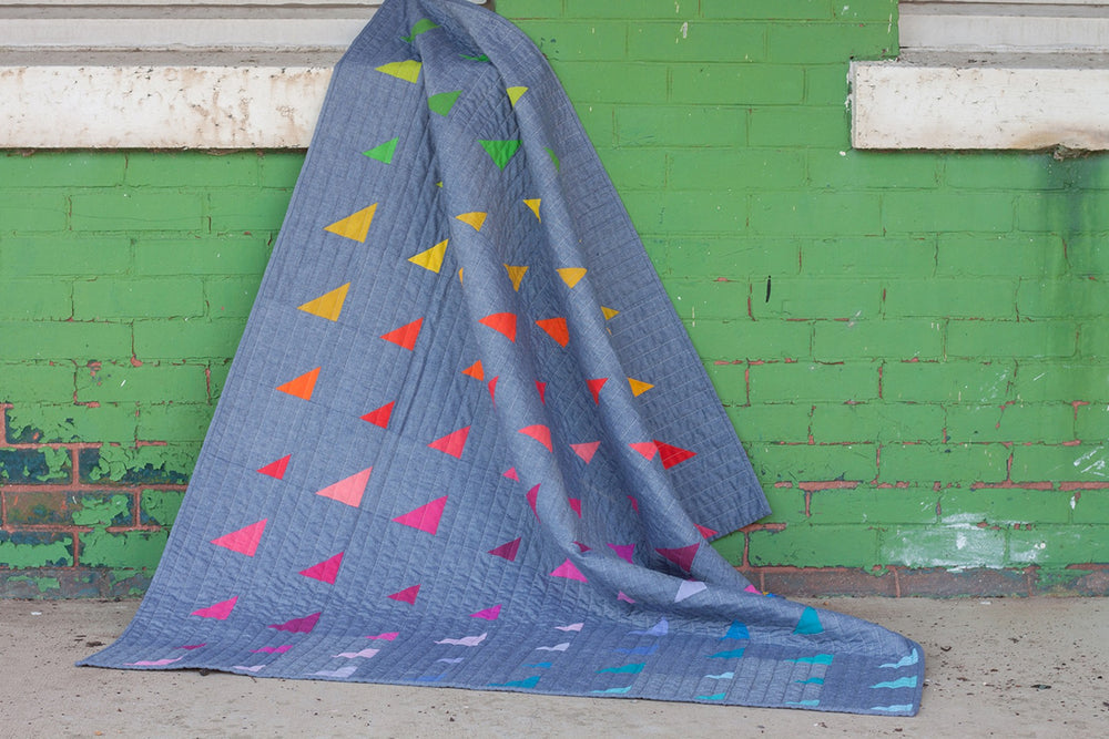 Tres, the number three in Spanish, is a simple and fast quilt design that produces a beautiful outcome. The name refers to the three different sizes of corner accents used to create variation within the blocks.