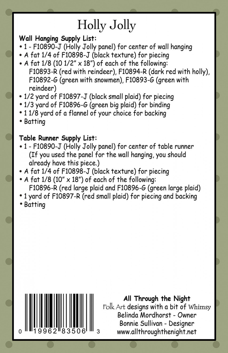 This fun pattern gives directions for making a Wall Hanging and a Table runner from the Holly Jolly fabric line.