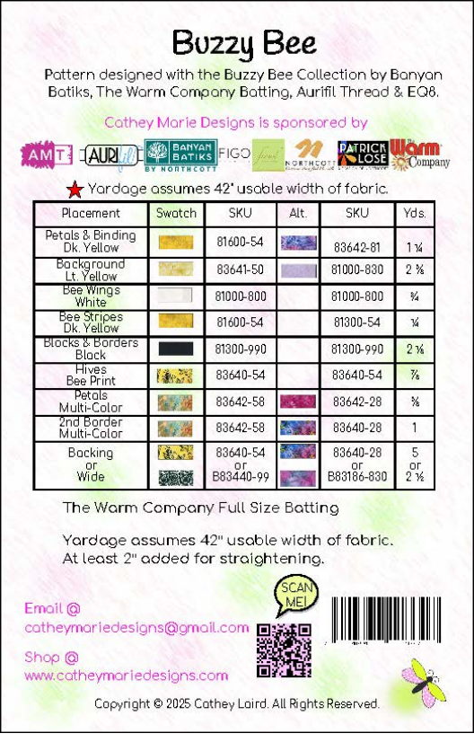 80" x 89" Twin Quilt No-waste flying geese technique included. Pattern designed with the Buzzy Bee Collection by Banyan Batiks, The Warm Company Batting, Aurifil Thread & EQ8.