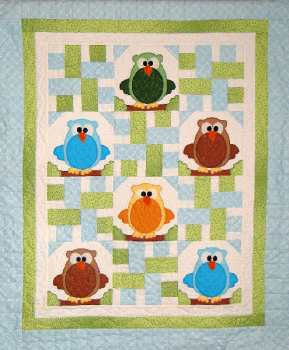 Make Baby Hoots for your next grandchild or baby shower gift! Easy strip pieced blocks and fusible baby owl blocks makes this a fun and cute gift to give.