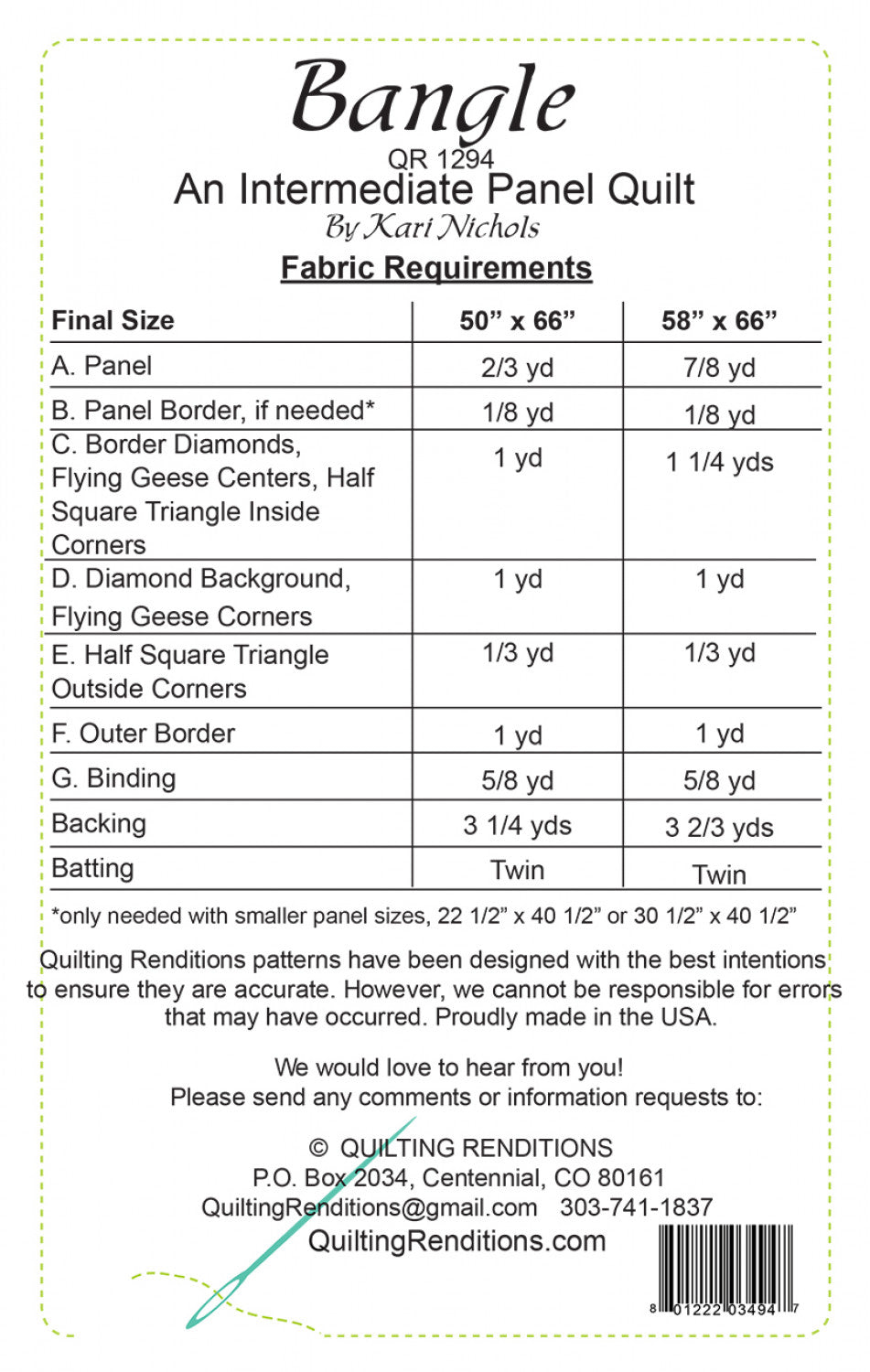 Bangle Quilt Pattern is backordered and will ship as soon as it is back in stock.