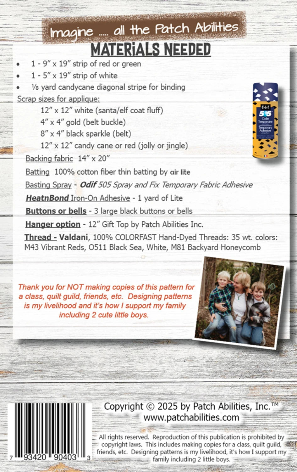 Get into the holiday spirit by creating one of two whimsical holiday inspired applique designs. Choose to Capture the Jolly essence of St. Nick or the Jingle vibe of a cheerful elf. Add your own buttons or sleigh bells to add a fun finish. This 2 for 1 pattern is beginner friendly and a creative kick off to your holiday decorating.