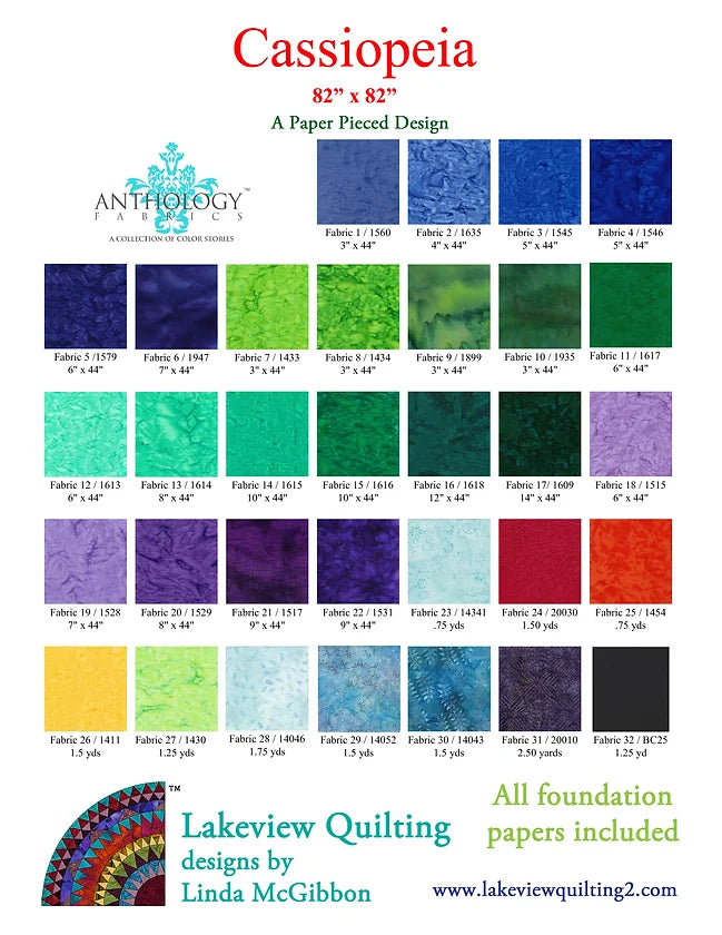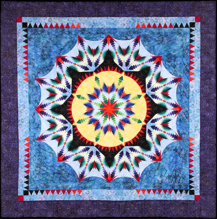 This is a paper pieced design. The basic blocks are pineapple blocks which are in the shape of a diamond. All foundation paper is included to make one quilt. 82" x 82"