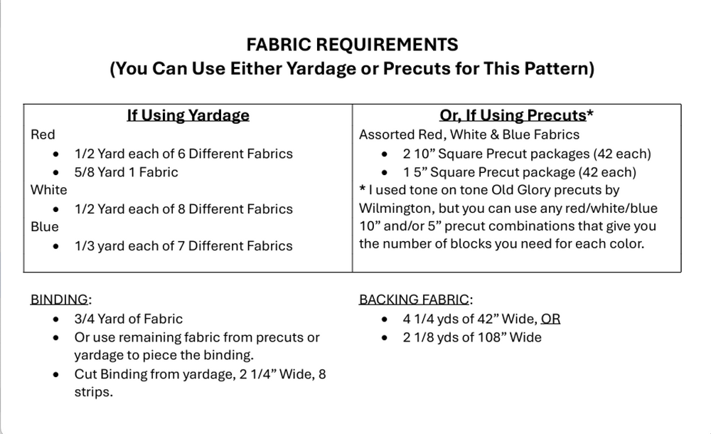 United We Stand is a striking quilt for that special patriot or holiday. Use either a combination of red, white & blue precuts or yardage to cut your own.