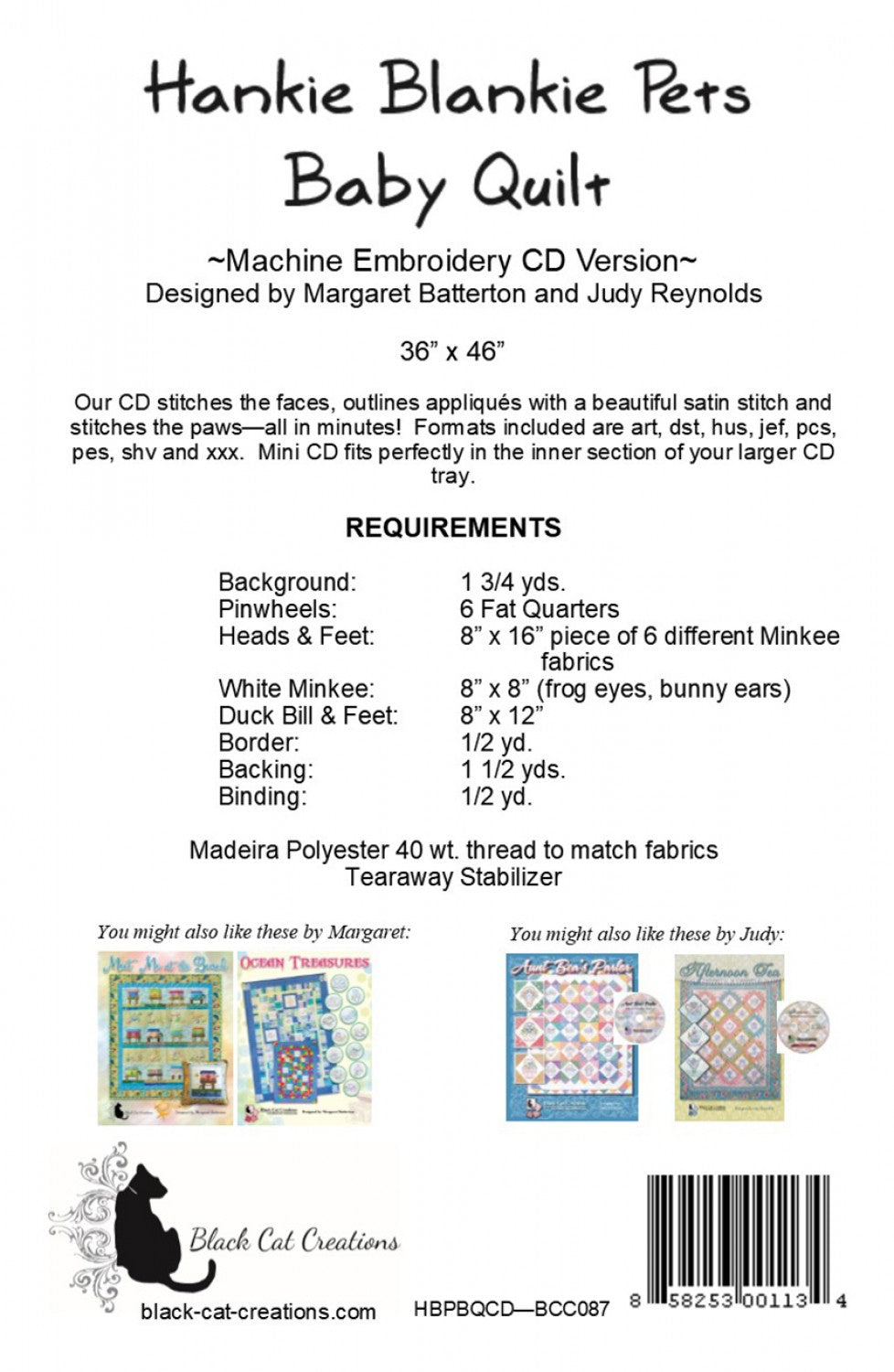 CD Hankie Blankie Pets Baby Quilt Machine Embroidery Found Here
