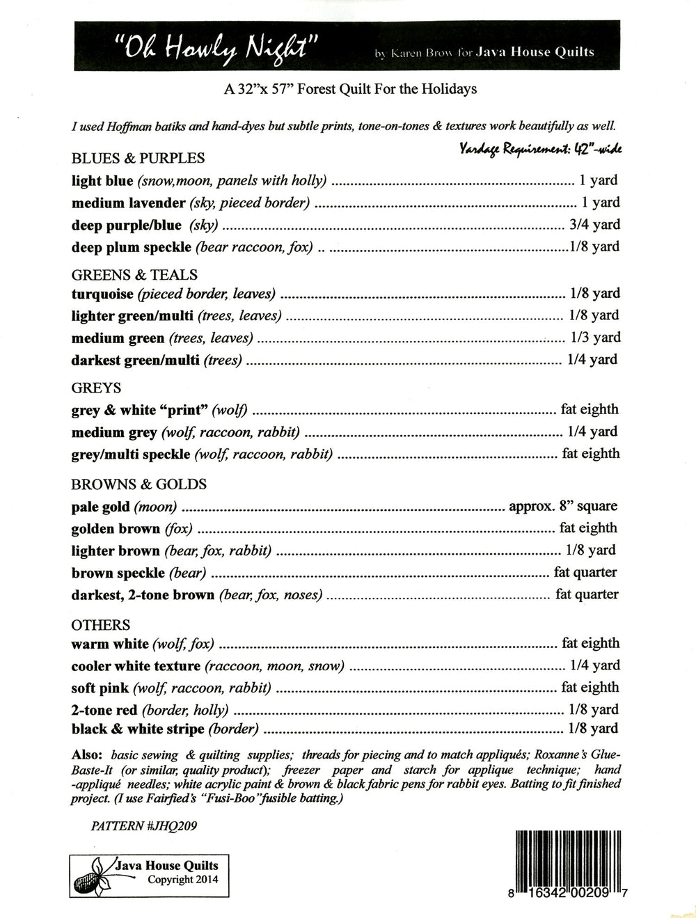 Oh Howly Night Quilt Pattern is backordered and will ship as soon as it is back in stock.