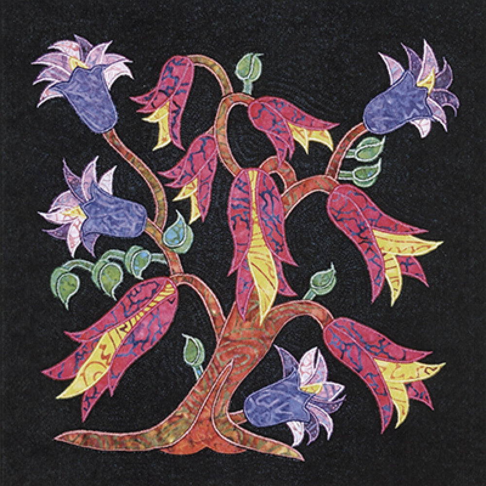 The Jacobean Arbor for embroidery machines is based on a hand applique design by Pat Campbell. It was so well received that it appeared on the cover of AQS magazine in 1990. Each of its nine blocks incorporate a unique theme based on Jacobean embroidery designs of 17th century England and Scotland. Pats passion to transform these hand embroidery designs into applique is depicted in each block by the variety of color, graceful stems, leaves, flowers and vines. Each block is a masterpiece in of itself, and can easily be used as a small project as well as the making the whole quilt.   The intertwining vines and flowers in the applique border are representative of the period.