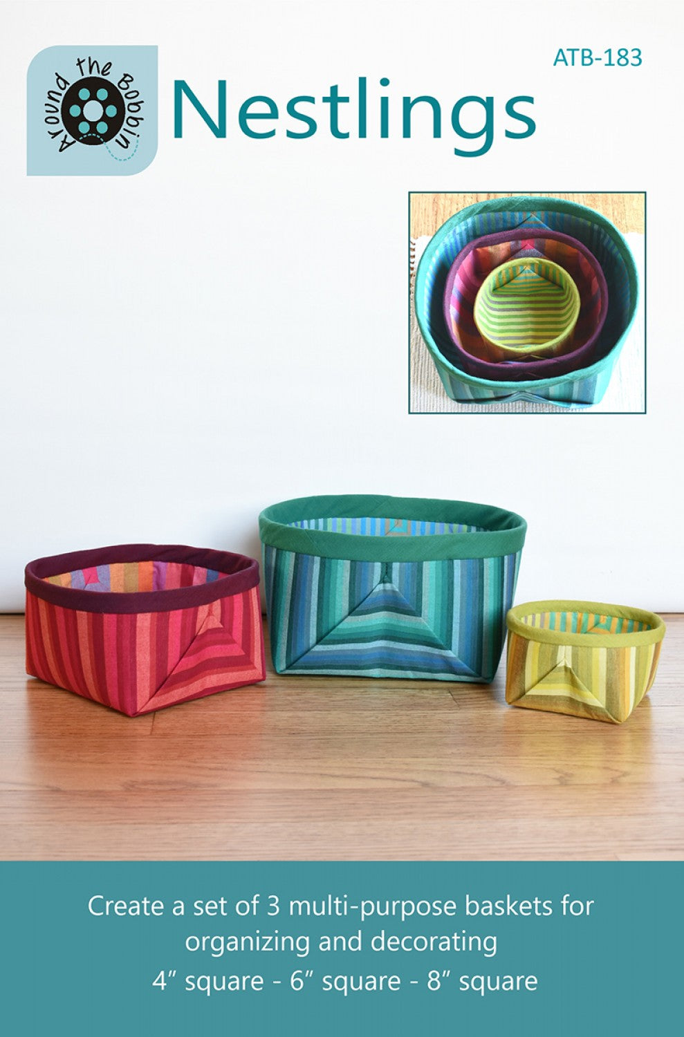 Organize and decorate in style with this set of 3 nested baskets. Feature your favorite striped fabrics or fussy cut a fun print. Great for classes and gifts. 4in, 6in, and 8in square baskets.
