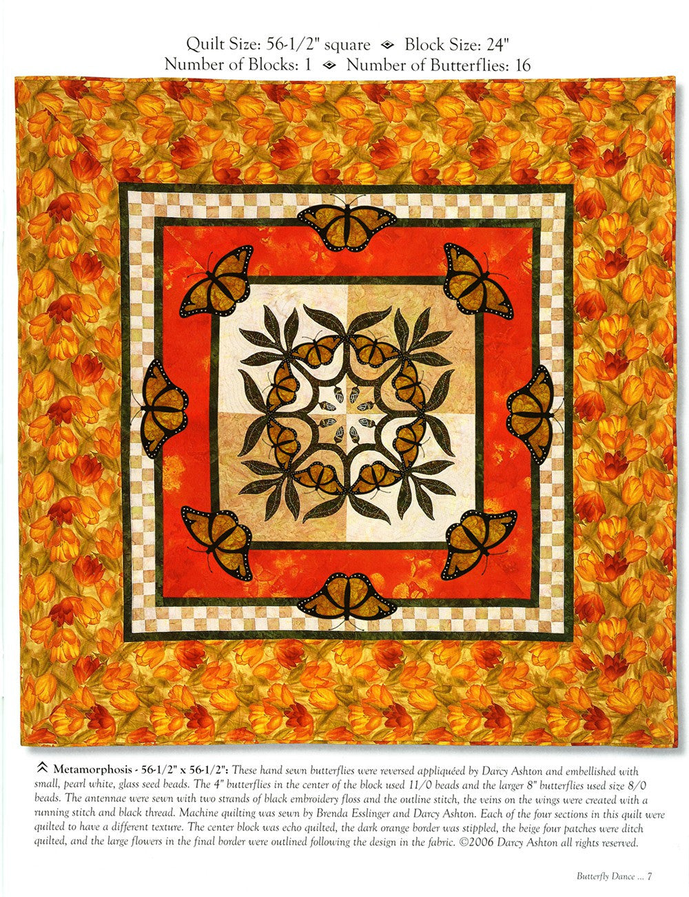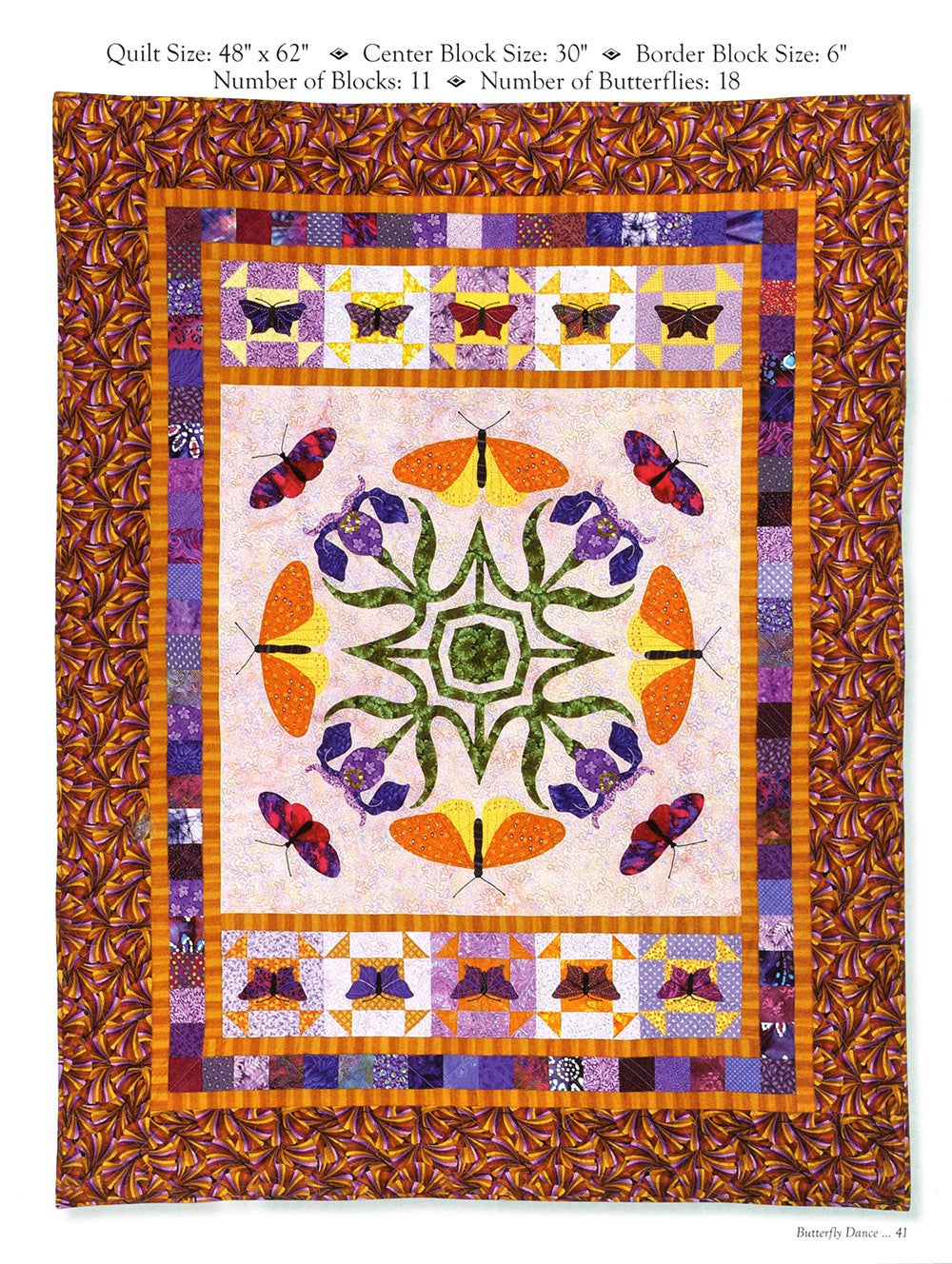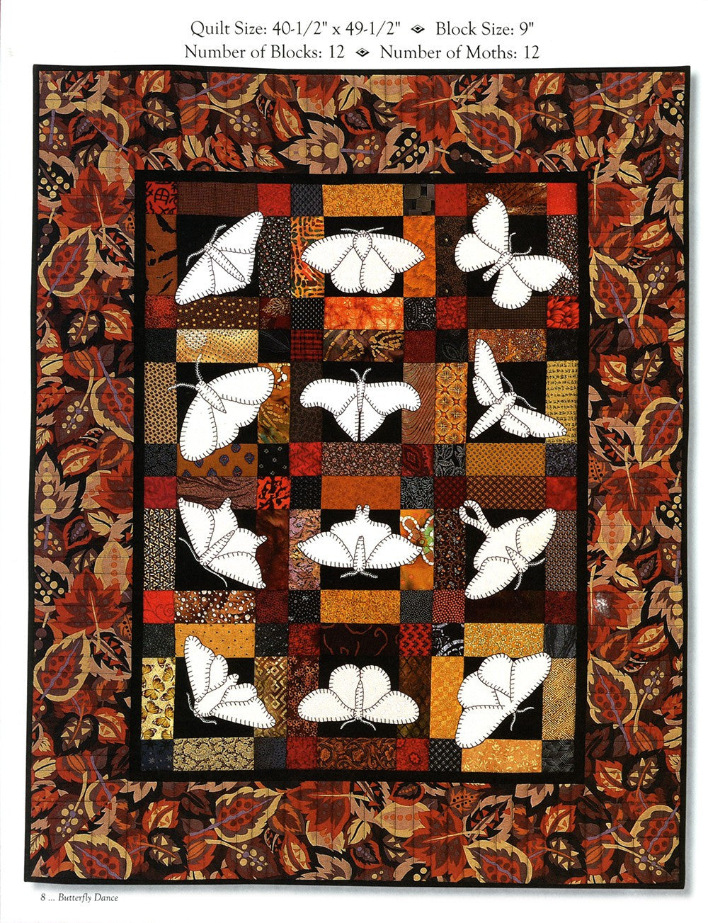 Butterfly Dance is a beautiful book which contains more than 40 different butterfly and moth patterns, two paper cut patterns, and a page of caterpillars. These patterns are large and easy to sew from just one big piece of fabric, or make them from several different fabrics. The choice is yours to make them as easy or as hard as you wish. Five different applique techniques are described in the book as well as 11 different quilts and projects including Butterfly Dance�, Moonlit Moths�, Pretty in Pink�, Antique Beauties�, and Metamorphosis�.