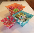 Sizes: Large 7in H x 10-1/2in W x 6-1/2 W at base Medium 4-3/4in H x 8in W x 5-1/4in W at base Small 4in H x 6in W x 4in W at base.