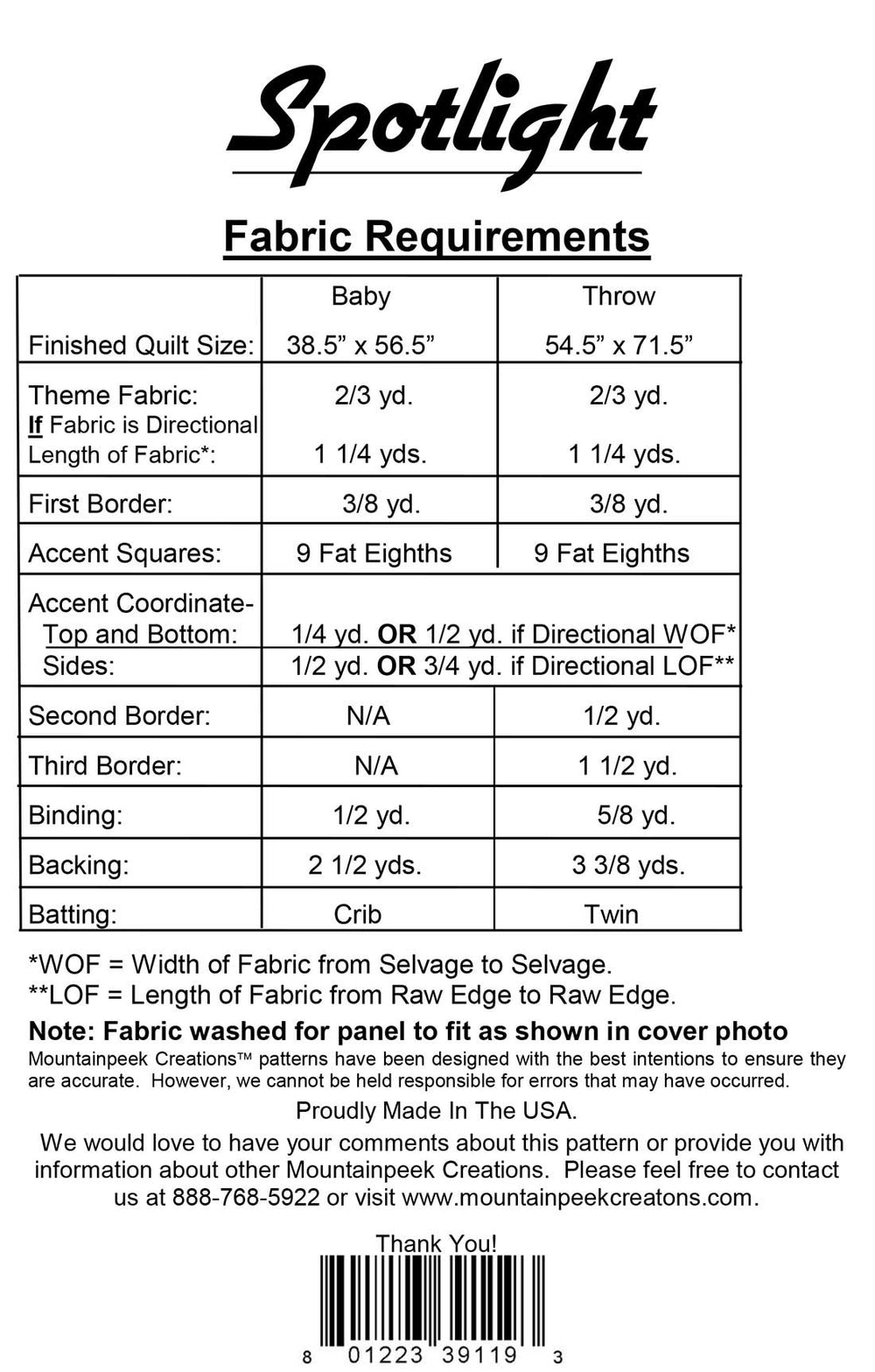 Do you have one of those fabrics you just cant cut? Put it in the Spotlight with this quilt. Sized for Baby or Throw, a quick and easy way to use those big prints. -