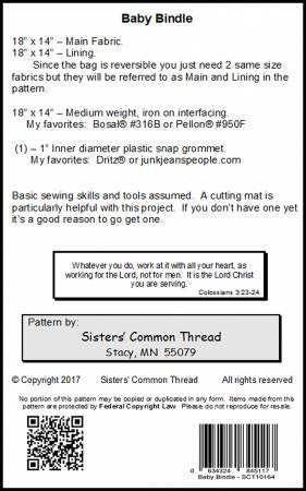 Baby Bindle Pattern is backordered and will ship as soon as it is back in stock.