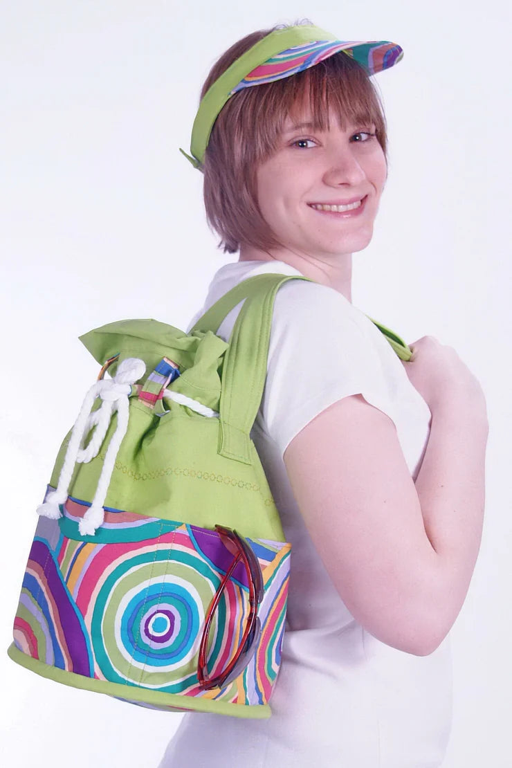 Flaunt this great drawstring bag and visor as you stroll along sun-kissed shores this summer.