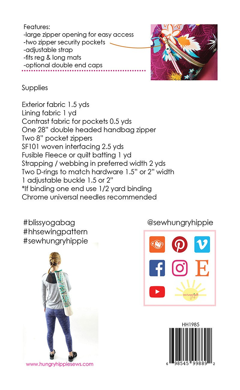 Bliss Yoga bag PDF sewing pattern. This instant download will help you to sew a zippered yoga bag with three different version possibilities, depending on your time and skill level.