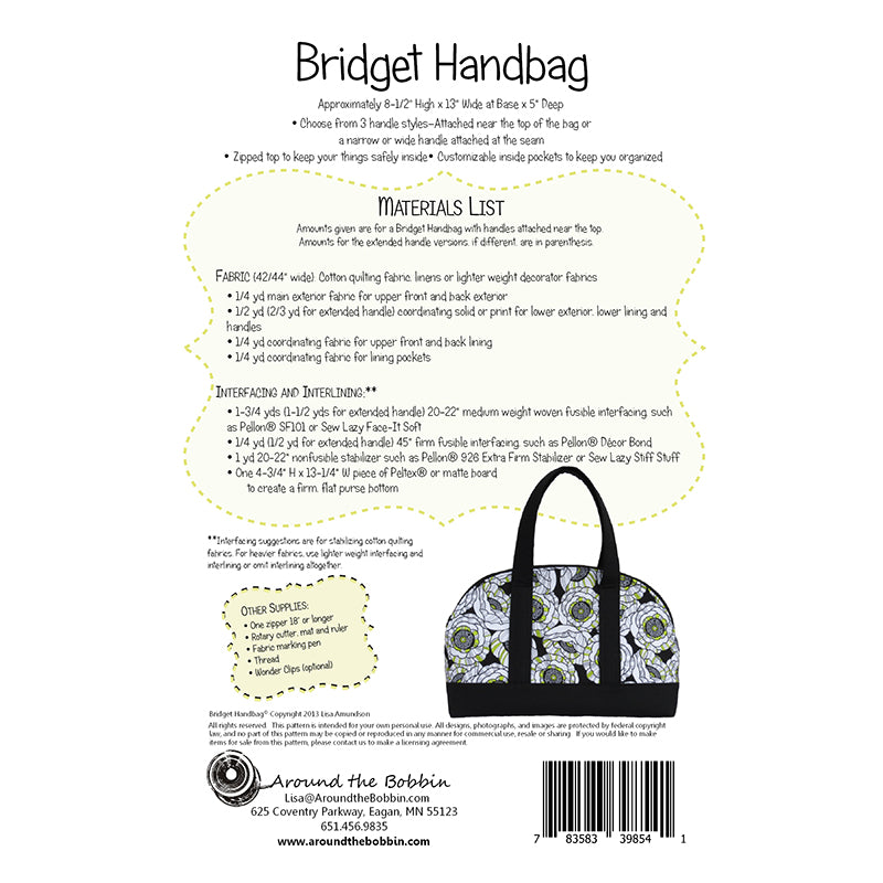 Bridget Handbag Pattern is backordered and will ship as soon as it is back in stock.