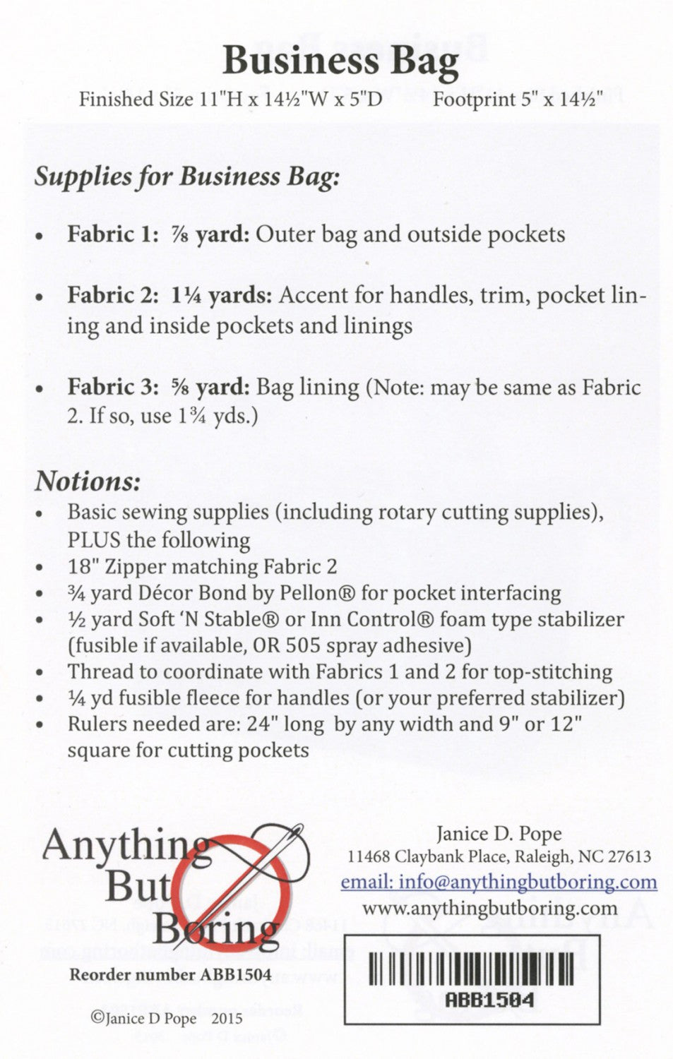 Business Bag Pattern is backordered and will ship as soon as it is back in stock.