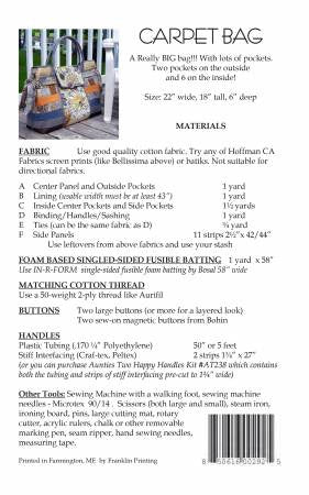 Carpet Bag Pattern is backordered and will ship as soon as it is back in stock.
