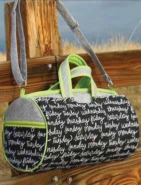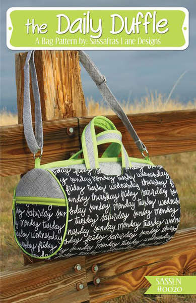 A modern take on the classic duffel bag! Plenty of room for that weekend getaway with a roomy inside and lots of exterior pockets. With a zippered enclosure and two zippered end pockets your treasures stay safe! The Daily Duffel finishes 18in wide, 10in tall and 10in deep. Super easy piping gives this bag a professional finished look. Can be worn as an over-the shoulder or carried by the handles. Hardware kit: Included is 2 yards of 3/16in cording for piping, two 1 1/4in gate hooks and 1-1/4in handle slide.