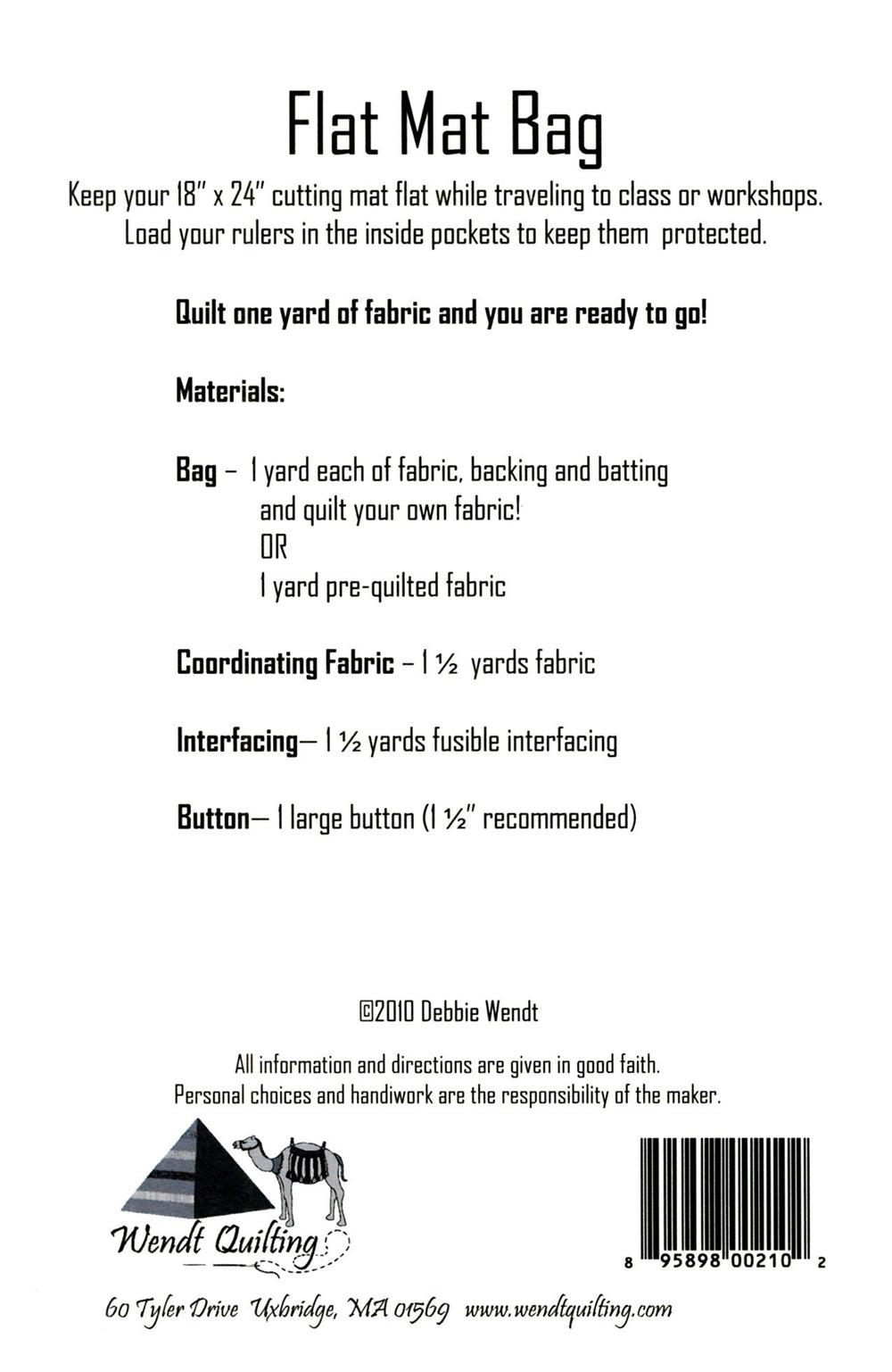 Have mat will travel! This stylish bag can hold an 18 x 24 cutting mat flat while traveling to class or workshops. Load your rulers in the inside pockets to keep them protected.