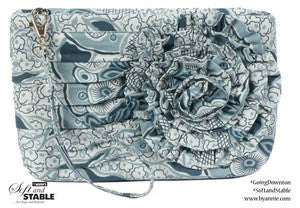 Inspired by the ladies of Downton Abbey, this classy wristlet clutch with ruffled rosette is the perfect accessory for a special outfit.