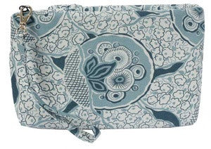 A detachable wristlet strap attaches to the easy-to-install inset zippered top.