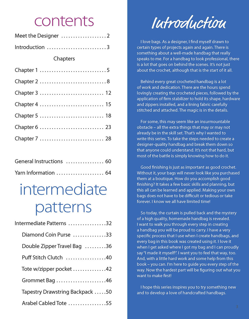 Leisure Arts Crochet Handcrafted Handbags Intermediate Book 3- Everything you need to know to make professional handbags.