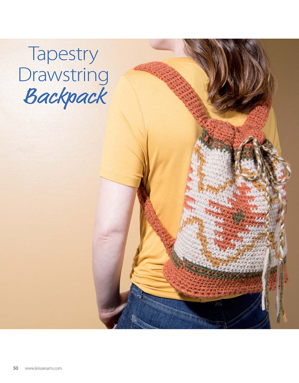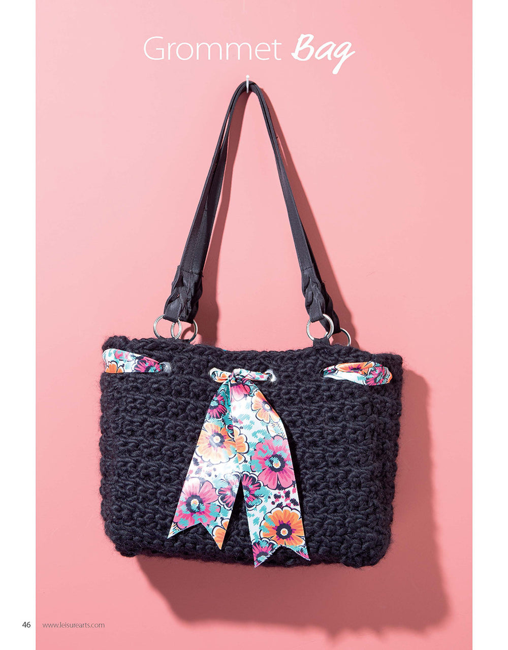 Projects include: diamond coin purse, double zipper travel bag, puff stitch clutch, tote with zipper pockets, grommet bag, tapestry drawstring backpack and Arabel cabled tote.