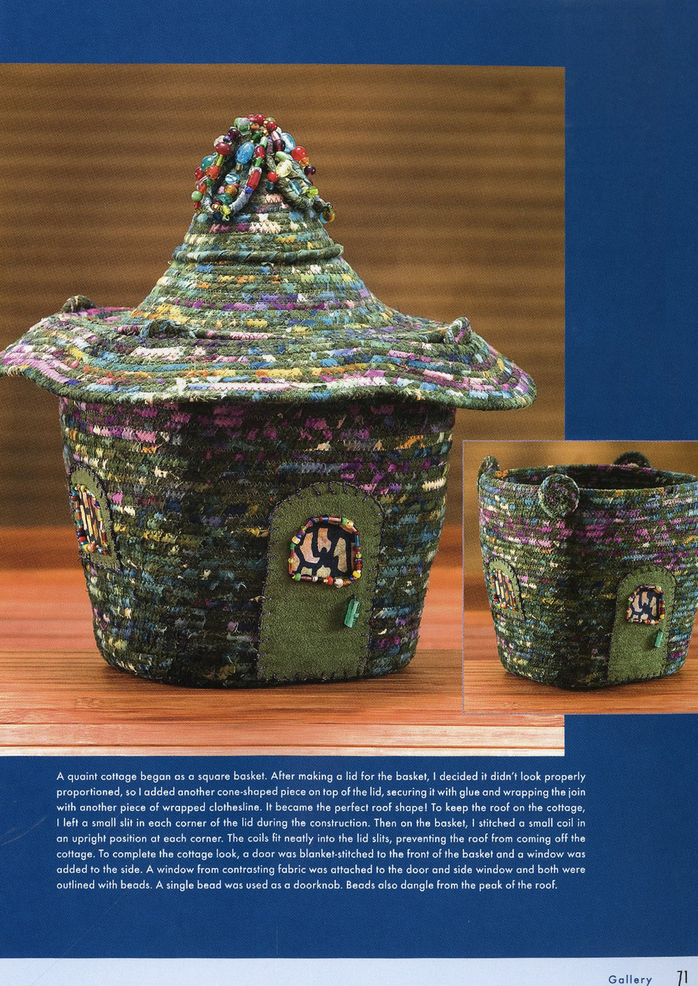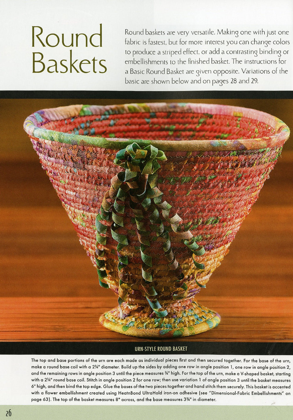 Wrap, wind, and sew fabric strips into fantastic containers! Start with a plate shape to learn the technique. Then experiment with 4 basic container styles to create, round, oval, square, and other shapes. Create purses, baskets, and bowels in a endless variety of sizes, shapes and colors