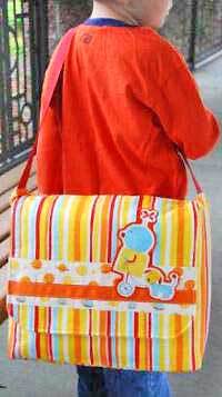 The Little Buddy pattern by Wired Up Designs is for a child-sized messenger bag with instructions included for a matching pencil case. There are lots of interior pockets and this pattern has a large main area that is perfect for books.