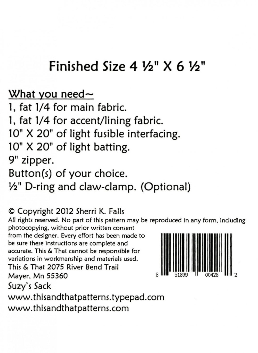 Little Scraps - Suzys Sack is backordered and will ship as soon as it is back in stock.