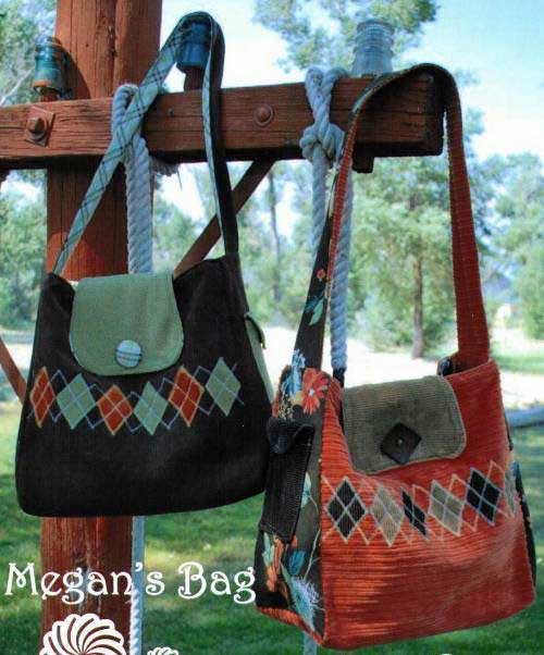 Megan's Bag pattern by Jess Goldman of Bananafana Designs is a messenger style bag with instructions for the argyle applique on the front. Finished size is 31 inches x 14 inches x 9 inches.