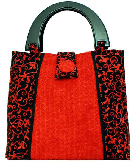 Fabric texturized with shrinking fabric adds interest to the center panel and makes this a fashion accessory worthy to take on a walk down the red carpet.