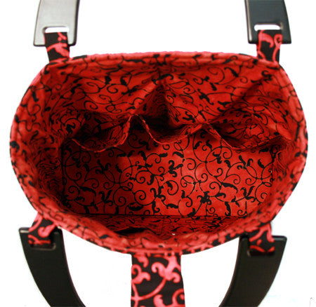 Numerous inside pockets can be customized to suit your needs and the pattern includes directions for either fabric or wooden handles.