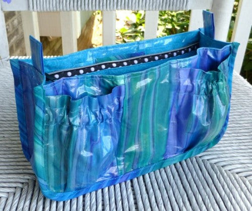 Totally unique zip off and on insert modules. Now your purse insert can be the perfect size for every one of your handbags! Alternate instructions for substituing velcro for the zippers! Insert modules in 3 sizes - use them separately or zipped together. Removable credit card caddy in 2 sizes.