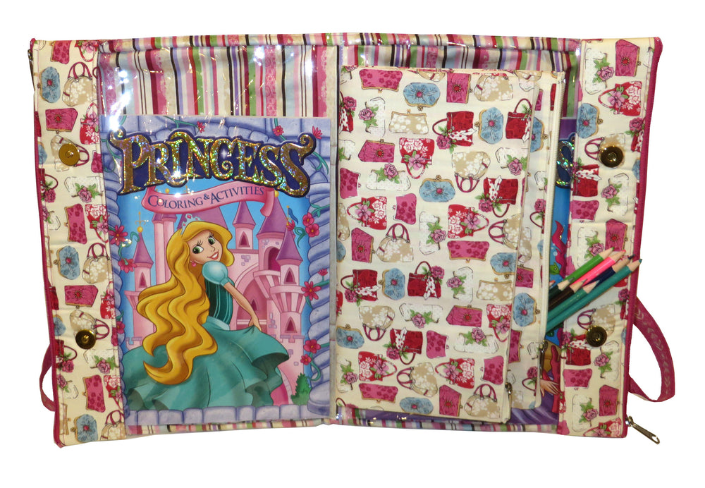 The Portable Portfolio is great for packing all sorts of things! It has 2 or 4 zippered pockets and it can be made in 3 sizes. The Portable Portfolio would make an excellent sewing kit to hold your instructions and all the sewing notions for any sewing project. The pattern includes directions for 2 inside options; add felt or batting pages to hold your in-progress patchwork pieces, or add 2 extra inside zippered pockets to hold all of the smaller items. The Portable Portfolio is so versatile you will want to make one in each size. Its many uses include as a cosmetic travel portfolio; as a place to hold scrapbooking supplies, a business notebook and tablet, or even a small computer. The Portable Portfolio is the perfect place to put everything you need to take with you!