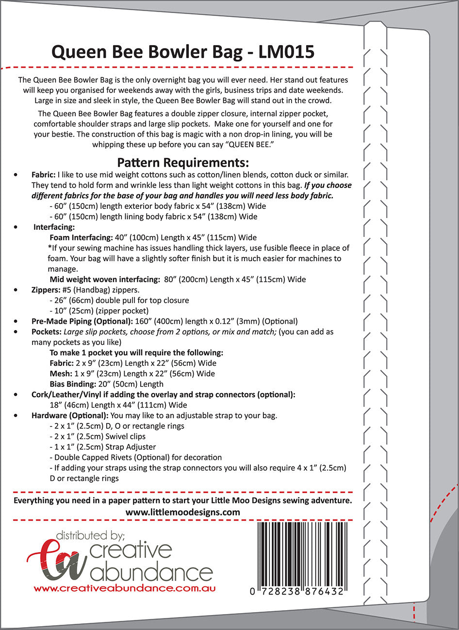 The Queen Bee Bowler Bag features a double zipper closure, internal zipper pocket, comfortable shoulder straps and large slip pockets. Make one for yourself and one for your bestie. The construction of this bag is magic with a non drop-in lining, you will be whipping these up before you can say “QUEEN BEE.”