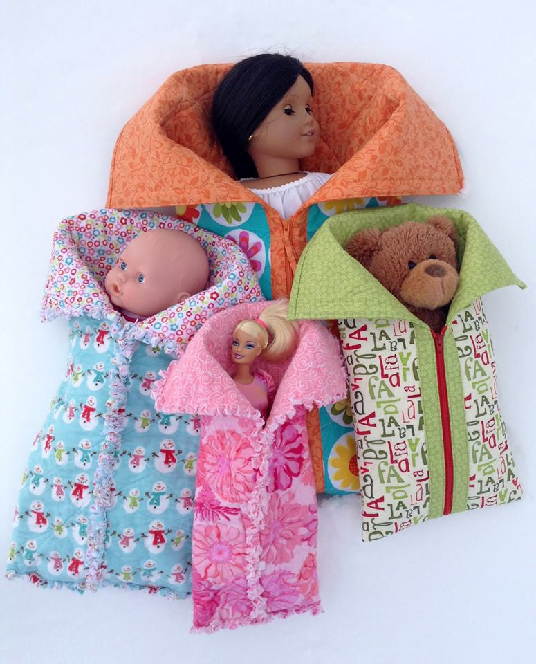 Playtime friends are all snuggled up in cozy sleeping bags, ready for a camp-out or slumber party! 4 sizes