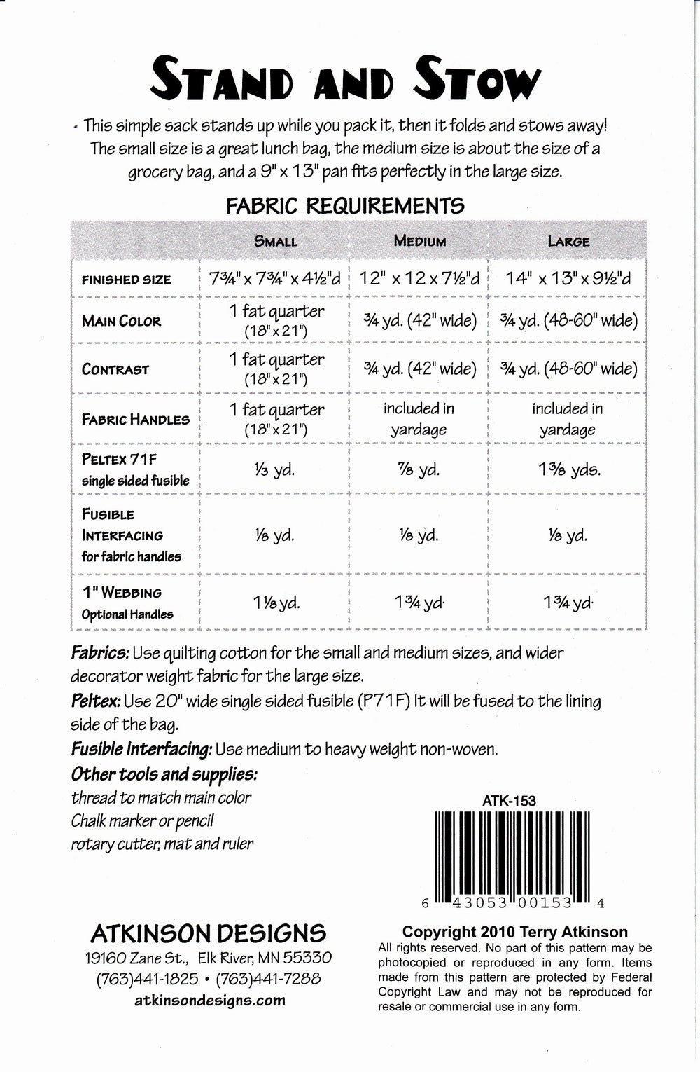 This simple sack stands up while you pack it, then it folds and stows away! Small 7-3/4in x 7-3/4in x 4-1/2in d great for a lunch bag. Medium 12in x 12in x 7-1/2in d about half the size of a grocery bag.Large 14-1/2in x 13in x 9-1/2in d fits a 9in x 13in pan perfectly.