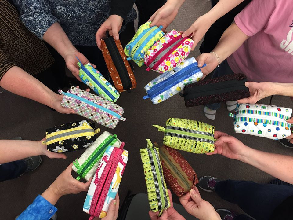 Take a look inside, there are no raw edges anywhere. A pair of fat quarters will make 2-3 of these classy little bags. Six sizes included in pattern.