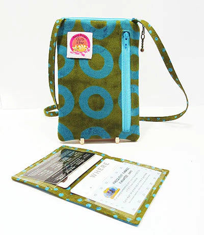 Carry your phone, cash, cards, earbuds and all your other stuff in the two pockets. Your card holder slips into the back zippered pocket. This universal sized cross-body bag can be made with a button or a bow and is fully padded to protect your phone
