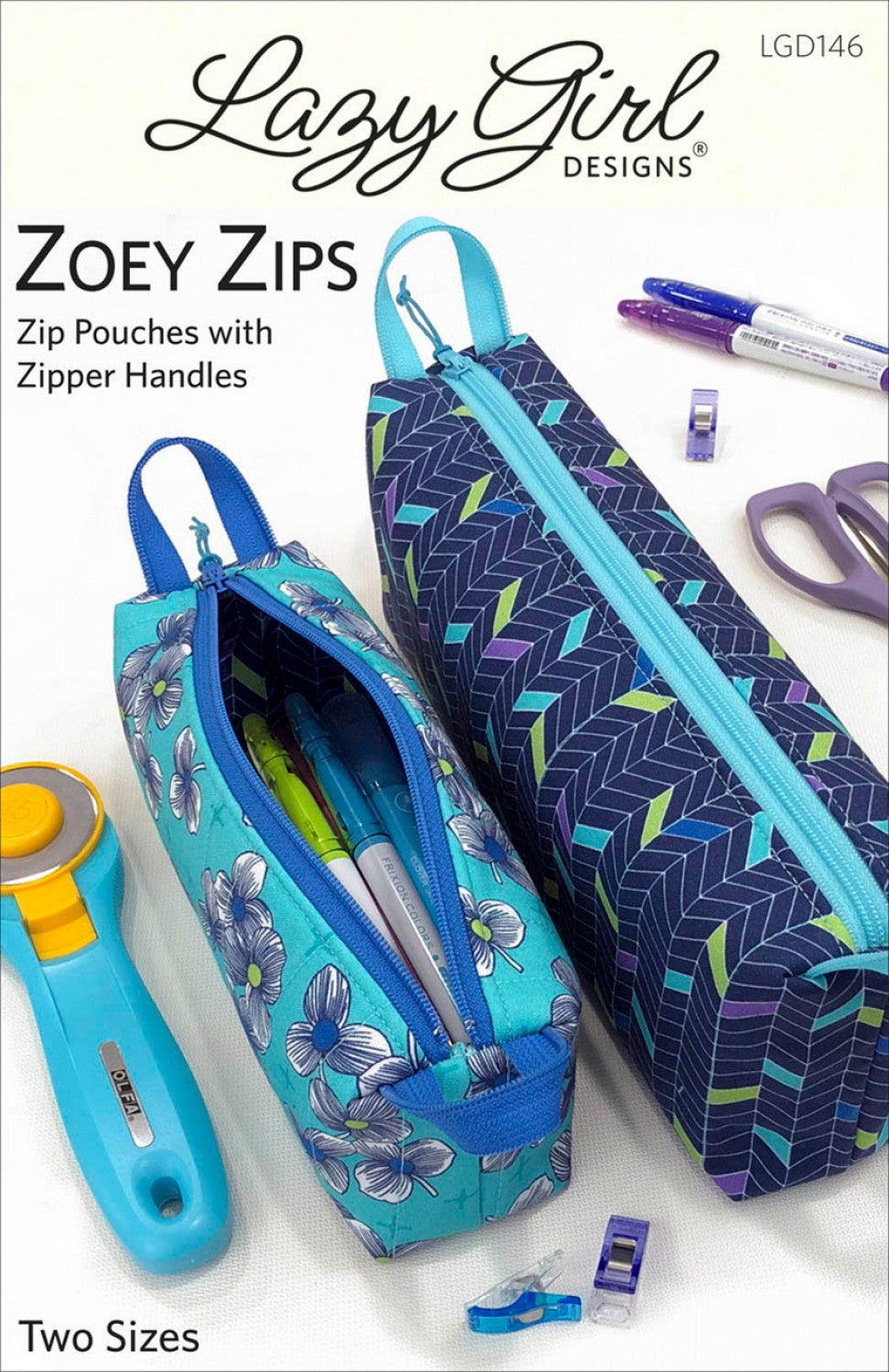 Adorable zip pouches with basket-style zip handles. Perfect for a pencil case, sewing notions, treasures, and more. Grab your favorite fabrics then cut a little, sew a little, zip a little - and done.