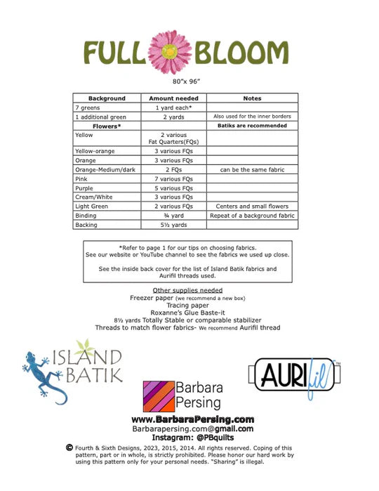 Full Bloom Quilt Pattern is backordered and will ship as soon as it is back in stock.