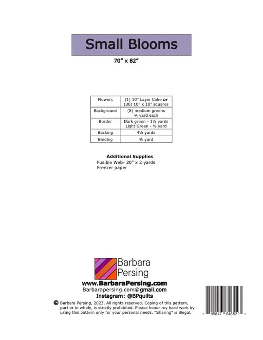 Small Blooms Quilt Pattern is backordered and will ship as soon as it is back in stock.