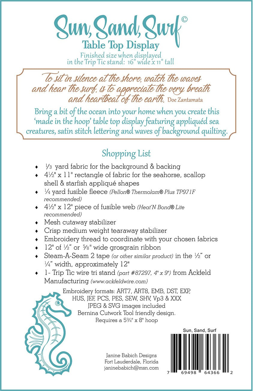 Bring a bit of the ocean into your home when you create this Made in the Hoop table top display featuring appliqued sea creatures, satin stitch lettering and waves of background stitching.