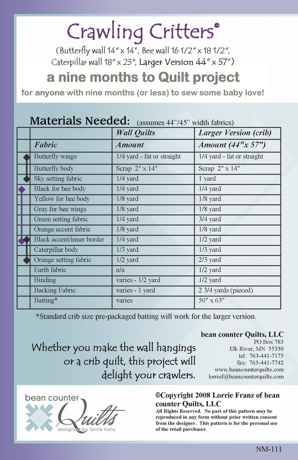 Crawling Critters Quilt Pattern is backordered and will ship as soon as it is back in stock.
