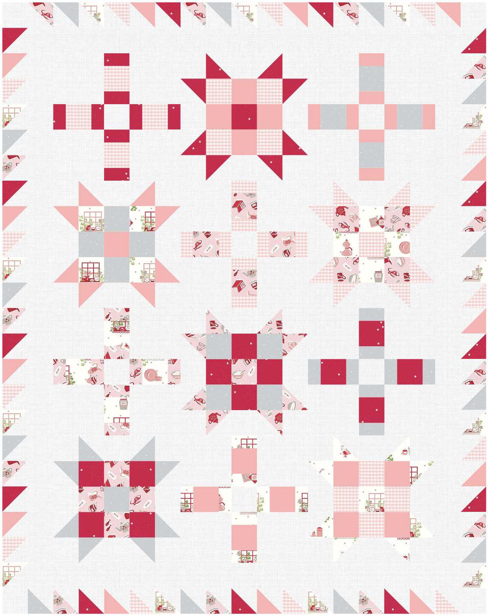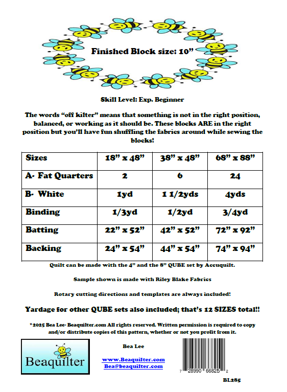 The words “off kilter” means that something is not in the right position, balanced, or working as it should be. These blocks ARE in the right position but you’ll have fun shuffling the fabrics around while sewing the blocks!